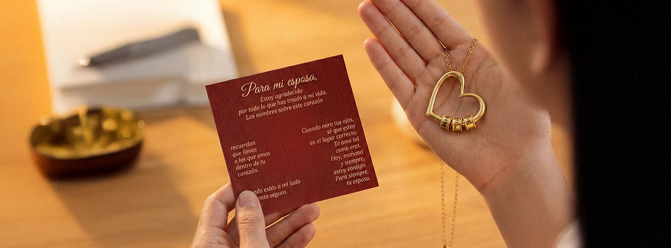 “Para Mi Esposa” Collar Corazón con un Nombre en Cada Cuenta